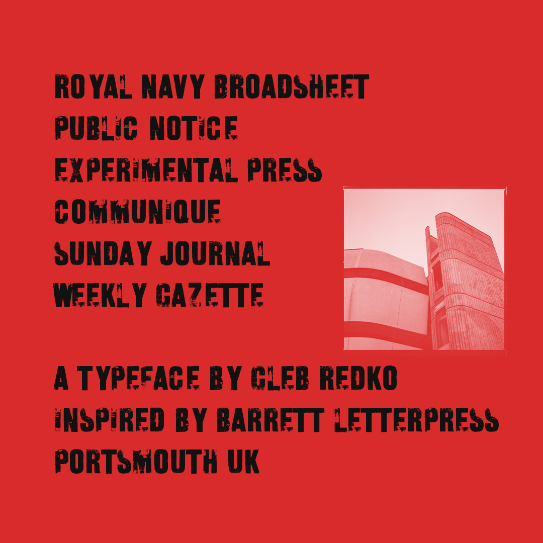 The prints were scanned, vectorised, and redrawn in Glyphs, preserving the quirks of the original impressions. Portsmouth Press is uppercase-only, with no punctuation or numerals. Built to honour its material history, it's ideal for posters, titles, and bold typographic statements.